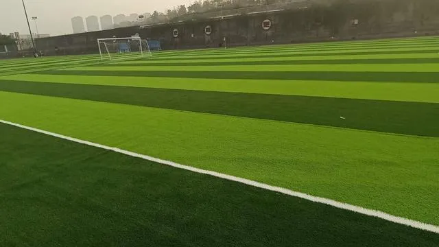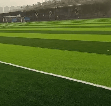 Eleven-a-side artificial grass football field, also known as standard football field, the size of the playing field stipulated by FIFA is 109 meters long and 72 meters wide, of which the playing field is 105 meters long and 68 meters wide, with a total area of about 8,000 square meters. The artificial turf of the eleven-a-side football field generally chooses 50mm high sand-filled artificial turf for football fields, the grass height is 50mm, the density is 10500-12600 clusters per square meter, the weight of the grass fiber should not be less than 8800DTEX, the higher the weight of the grass fiber The better the quality, after the lawn is laid, each square meter needs to be filled with about 28kg of quartz sand and 4-6kg of green rubber particles. The rubber particles can generally choose EPDM rubber particles or TPE particles, both of which meet national standards. The turf color of the eleven-a-side artificial turf football field is a combination of dark green and light green, usually 4 meters dark and 4 meters light.